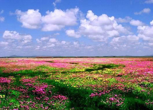 據當地牧民介紹:每到這個季節,會有許多百里之外的游人到這里來看花,今年由于雨水充沛,花開的更密更艷,來的人也比往年多,僅一個牧業村的草場一天就有數百人次來看花照像。