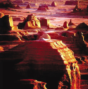 周而復(fù)始,最終唐軍全部覆沒在這片充滿希望又充滿絕望的戈壁上。后人在將軍去世的地方修了一座廟以紀(jì)念他,取名“將軍廟”。如今將軍廟已經(jīng)倒塌,這片戈壁由此得名“將軍戈壁”,魔鬼城便是將軍戈壁上的一座城堡。