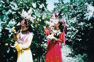 無花果,維吾爾語稱“安吉爾”,原產(chǎn)中亞波斯,10世紀(jì)前后傳人阿圖什。無花果樹雌雄異花,花隱于囊狀花托內(nèi),平常人只見其果,不見其花,故而得名。無花果實為扁圓形,果皮為金黃色,果肉細軟,汁濃,含糖量高達74%以上,其味甘甜可口,營養(yǎng)豐富,含有豐富的氨基酸、多種維生素和人體所需的多種礦物質(zhì),并有滋補、健胃、祛風(fēng)濕和防癌等作用。無花果曾被譽為“仙人果”和“人參果”,當(dāng)?shù)鼐S吾爾族群眾更是稱其為“樹上結(jié)的糖包子”。