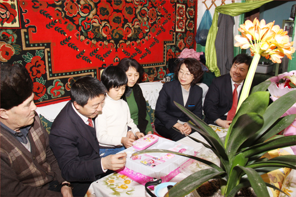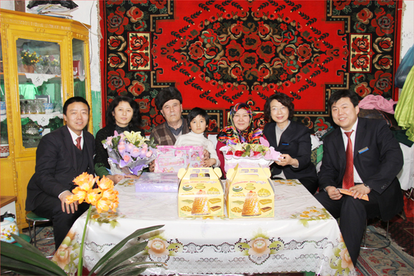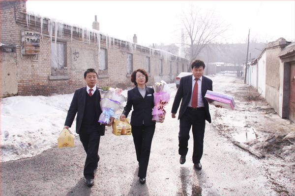 這是在2012年的“三八”國際勞動婦女節到來之際,華春投資集團工會主席高青、工會委員鄭培君和已故員工阿里木•阿吾東生前所在企業即華春投資集團下屬的新疆華景物業服務有限公司的管理人員一行,帶著華春投資集團總裁李成功先生和華春全員的深情厚誼,特地前往已故員工阿里木•阿吾東的家,看望慰問了其父母與妻子、孩子,送上鮮花和慰問品,致以誠摯的關愛之情并送上節日的祝福,使已故員工的家屬真切感受到了來自華春這個大家庭的關懷和溫暖。