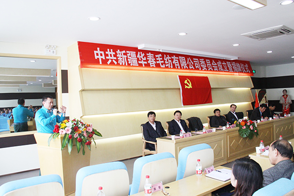 華春毛紡第一屆黨委書記曹援成同志,代表華春毛紡黨委班子表示了決心。五家渠經濟技術開發區黨工委書記、管委會副主任付衛同志,向華春毛紡黨委贈送了學習書籍及黨員干部現代遠程教育設備。