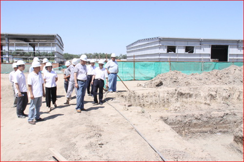建筑工地,暑氣蒸騰,華春黨委書記嚴天利、工會主席高青、總裁助理李榮桂等行政管理人員在工地與一線施工人員親切交談,了解工程的建設進度,親切詢問了工人們的作息時間和生活情況,對工人們戰高溫、搶工期、保質量的高尚敬業精神給予了高度評價。希望一線人員要保重身體,嚴格按照安全操作規程進行施工,以確保暑期的施工安全。