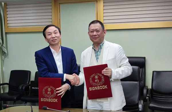 華春集團董事局主席兼總裁李成功、華氏康源董事長戴信敏代表雙方簽約。華春集團執行總裁鄧潔文、研究院院長胡時先、行政辦主任劉星及華春藥業管理人員與華氏康源首席醫學官李賓、醫藥商務總監李澤明共同見證了簽約。