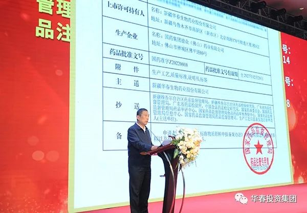 新疆自治區(qū)藥監(jiān)局黨組成員、副局長余永強(qiáng)宣讀了國家藥品監(jiān)督管理局于2022年12月29日批準(zhǔn)的新疆華春生物藥業(yè)抗抑郁癥1.1類中藥創(chuàng)新藥“參葛補(bǔ)腎膠囊”上市許可證書和“參葛補(bǔ)腎膠囊”的優(yōu)勢特點(diǎn)。