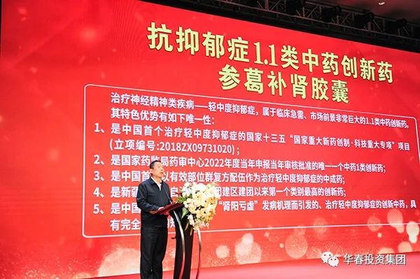 參葛補(bǔ)腎膠囊是中國治療輕中度抑郁癥的國家十三五“國家重大新藥創(chuàng)制•科技重大專項(xiàng)”項(xiàng)目,是國家藥監(jiān)局藥審中心2022年度當(dāng)年申報(bào)當(dāng)年審核批準(zhǔn)的一個(gè)中藥1.1類創(chuàng)新藥,是以有效部位群復(fù)方配伍作為治療抑郁癥的中成藥,是新疆維吾爾自治區(qū)及新疆生產(chǎn)建設(shè)兵團(tuán)建區(qū)建團(tuán)以來類別最高的創(chuàng)新藥,是中國目前解決中醫(yī)“腎陽虧虛”發(fā)病機(jī)理而引發(fā)的、治療輕中度抑郁癥的創(chuàng)新中藥,華春藥業(yè)具有完全獨(dú)立的知識產(chǎn)權(quán)。