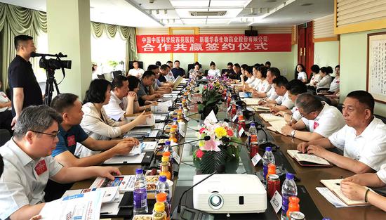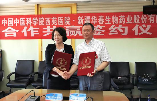 中新網新疆新聞6月29日電 (記者 閆文陸)29日,中國中醫科學院西苑醫院與新疆華春生物藥業股份有限公司簽訂合作協議。雙方將以此次合作為契機,攜手充分發揮合作優勢,共同致力于中醫藥事業的發展。