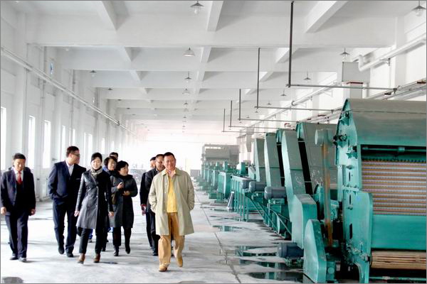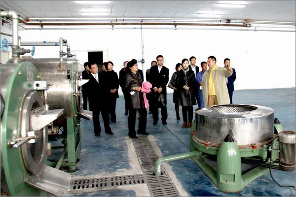 李總裁帶領管理人員參觀毛紡工業(yè)園其它車間