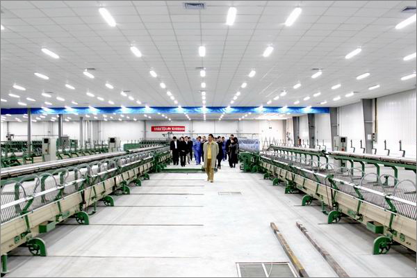 李總裁帶領管理人員參觀梳紡車間