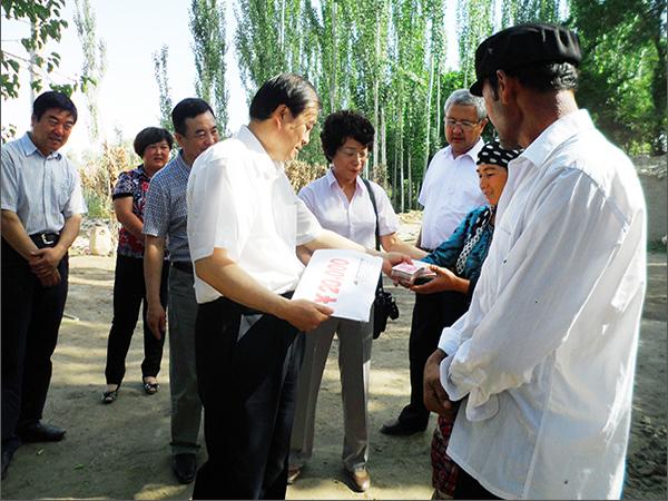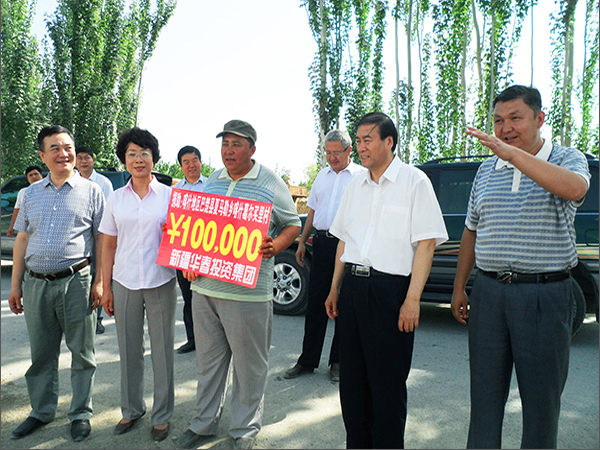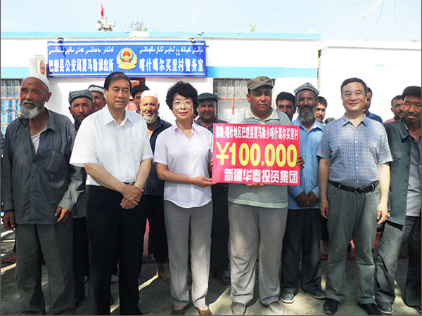 6月23-25日,由自治區政協副主席李湘林帶領自治區政協提案委員會和林業廳有關領導以及新疆華春投資集團副總裁常青、工會主席高青一行6人組成的調研組,赴喀什地區巴楚縣夏馬勒鄉喀什噶爾買里村進行調研扶貧,華春投資集團為該村和貧困戶捐助現金共14萬元,為新疆的貧困地區的少數民族農民獻上一片愛心。