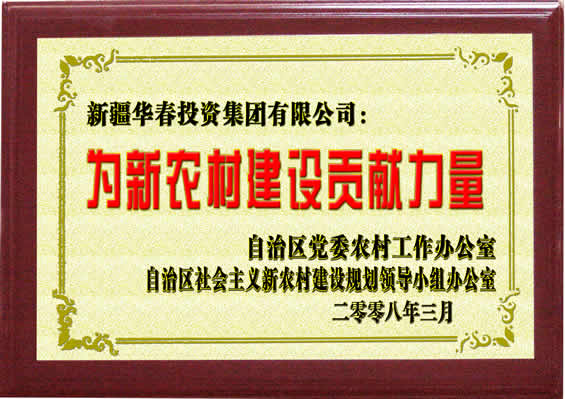 “為新農村建設貢獻力量”榮譽證書